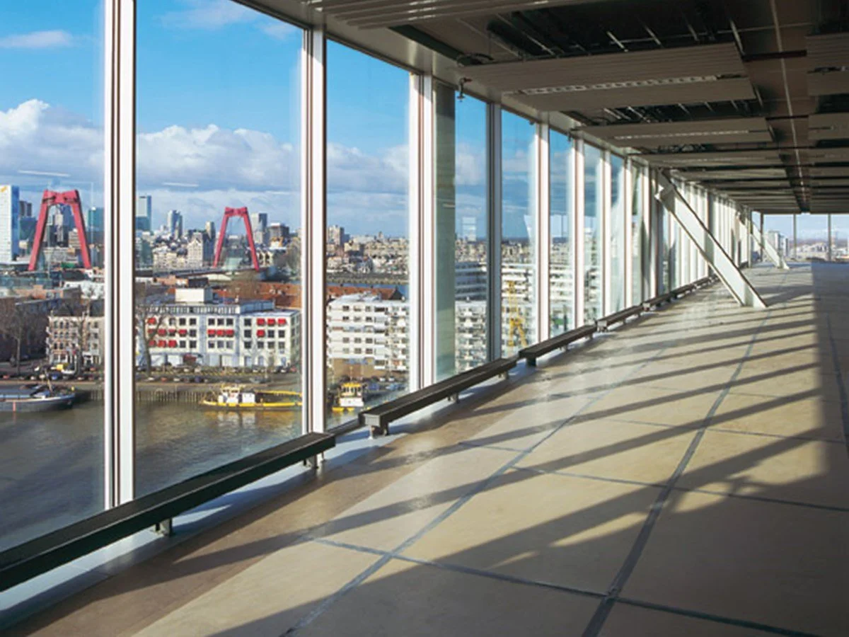 “The Bridge” of Unilever Bestfoods Netherlands in Rotterdam is known nationwide for its distinctive architecture and prominent location. Even in 2001, sustainability was a central focus for the project and its heating and cooling systems were central to that focus.